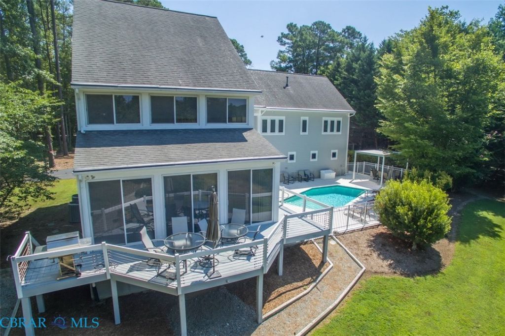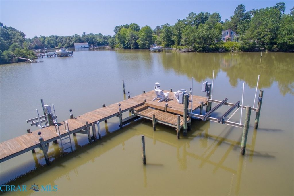 Ideal for entertaining or just relaxing. Fabulous Contemporary with walls of glass overlooking the creek and in-ground pool. Three private bedrooms and three and one-half baths. Great open spaces and high ceilings. Kitchen, Dining area and living areas which open up to a wrap around deck and tall glass walls overlooking the Gunite pool and lovely creek views. Two car attached finished garage and a Two car detached oversized garage with a Two bedroom, one bath, living area, kitchen and open deck upstairs. Pier with boatlift and jet ski lift. 3.5 MLW. Fenced dog run outside and in part of garage. Lovely landscaped grounds and paved drive. Property is being sold with all furnishings (except a few personal items) Great neighborhood just minutes from Urbanna. Urbanna is home to several restaurants and shops, wine and oyster strolls, farmers markets, Second Saturday events at the park and the famous Urbanna Oyster Festival. Total sq. ft. includes 450 sq. ft. in detached garage.